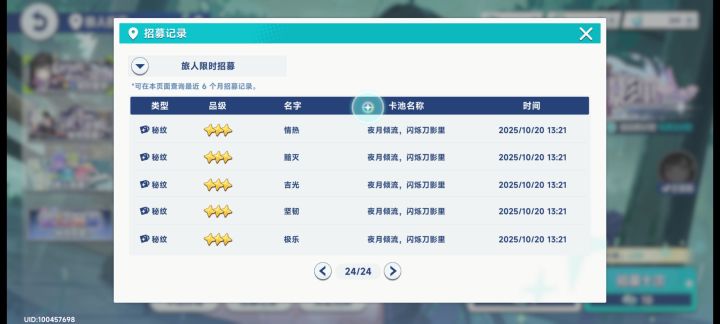 星旅开服同样一个星期,怒打125抽,出来两个苍兰,被迫保底领取千都世