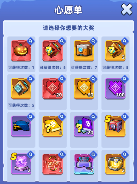 抽奖前可选择心仪的大奖。每次抽奖都会增加幸运值,当幸运值达到上限时,下一次抽奖必定获得大奖!🎯