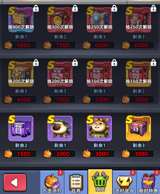 抽奖过程中可随机获得万圣南瓜,可用于活动商店兑换包含图纸自选箱、机器人皮肤自选在内的各类稀有道具。