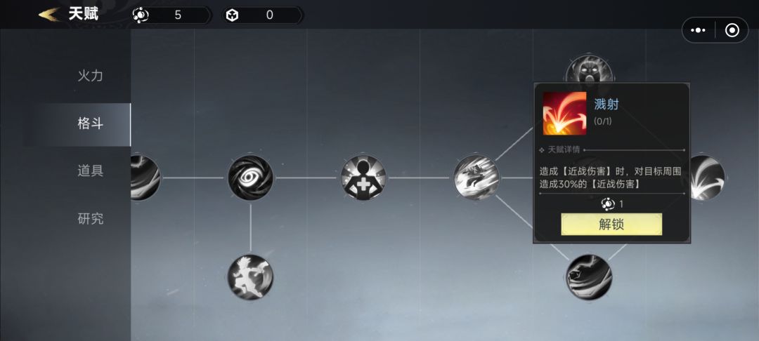 但是游戏特定有4个天赋树,每个天赋树有不同的玩法,选择的时候要根据自己的佩戴武器类型来选择,当然各有所长看自己喜好,我喜欢远程所以玩的第一个枪械,喜欢近战的可以选着刀类,或者喜欢苟的就玩个扳手吧