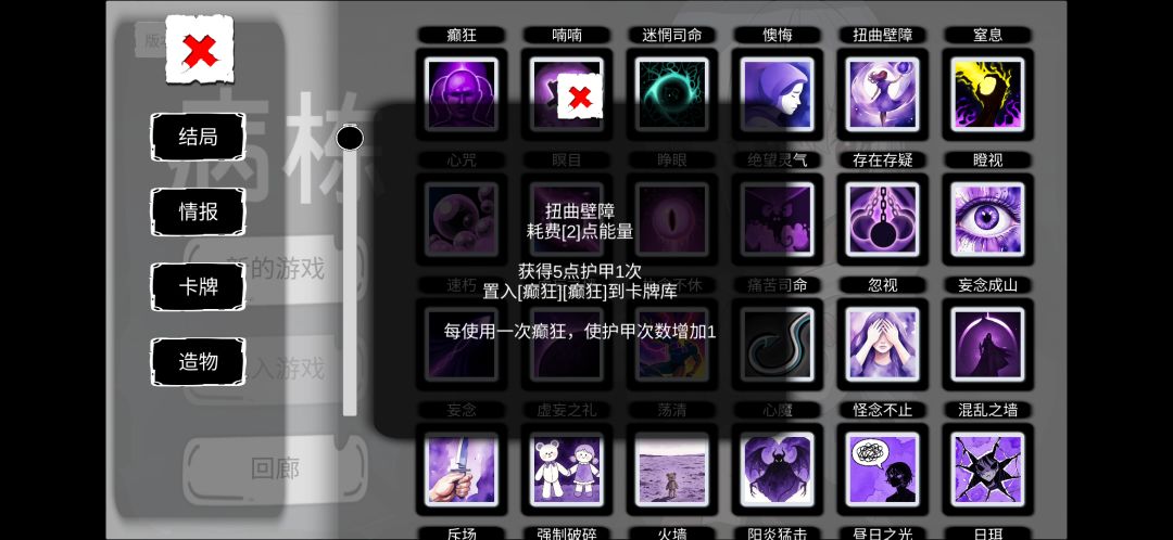 癫狂(可为第二张虚妄之旅或懊悔等能直接抽出癫狂的卡牌)