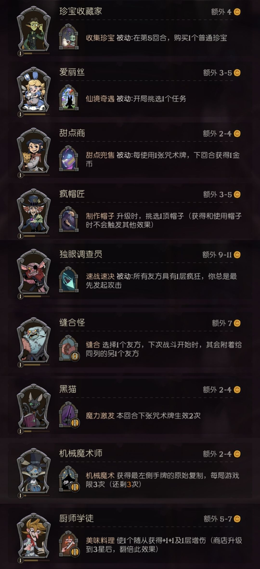 机械魔术师:3星搜装备"星座之书"(阵营计算+1),然后复制出4本,其他英雄有"鬼牌"同理