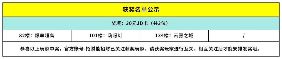 活动已开奖,获奖名单如下,感谢各位玩家的参与,我们下次活动再见!