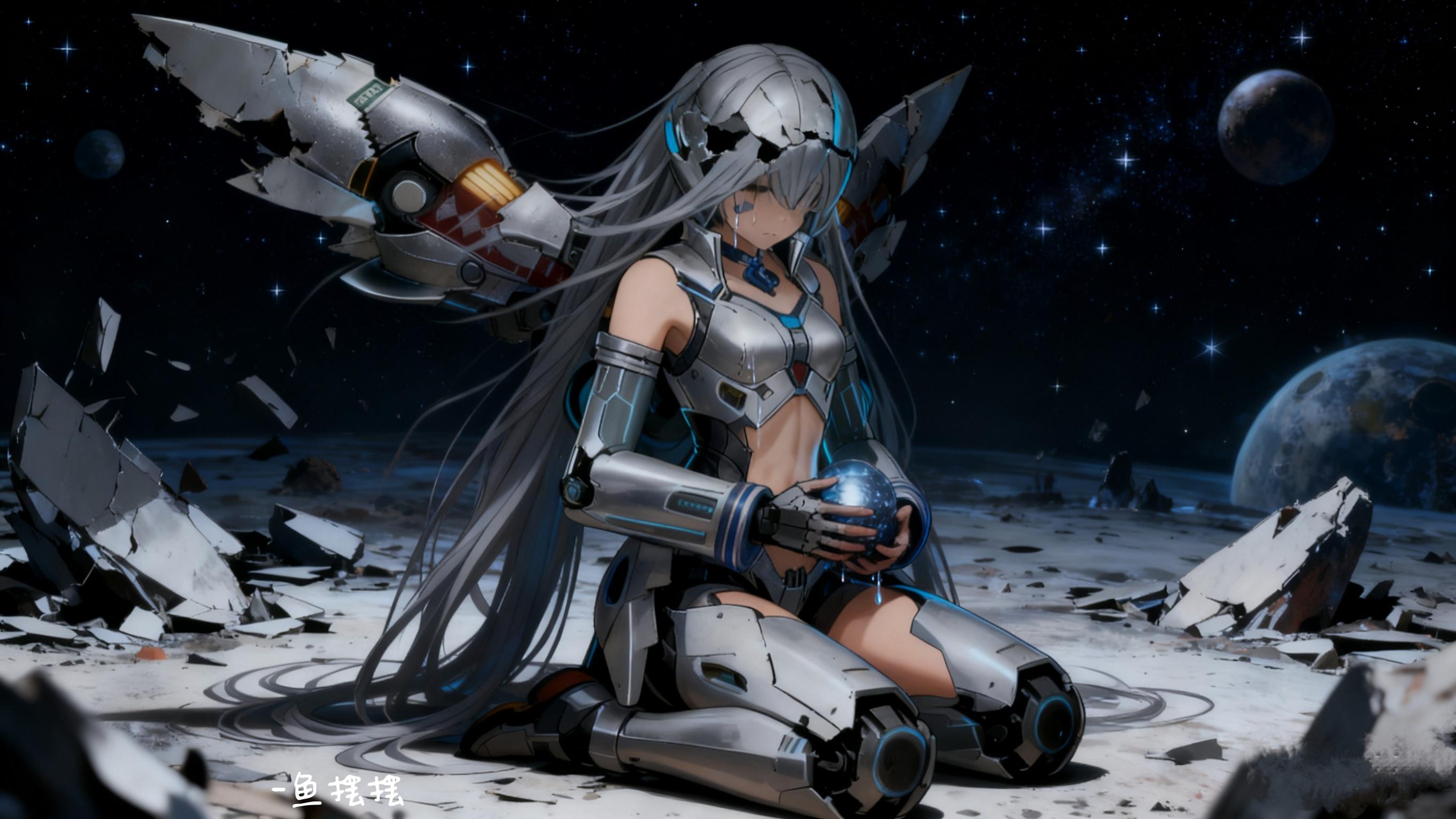 一滴泪砸在机甲手背上,混着机油晕开。她抬起头,星幕里的光落在破碎的头盔镜片上,折射出细碎的、像极了母星夜晚灯火的光斑。