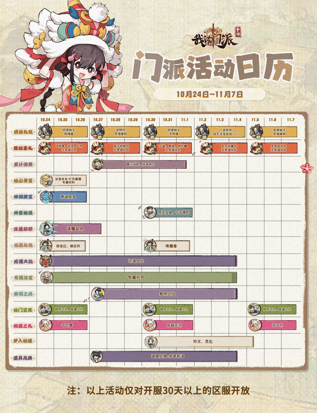 「门派活动日历」10月24日—11月7日