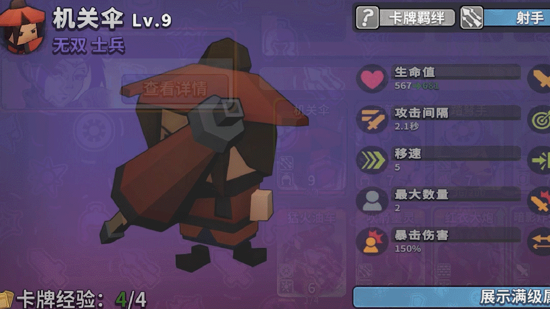 游戏中有许多趣味的收集玩法,超百种兵种建筑卡牌可以让你随意搭配,卡牌带有羁绊效果,携带相同羁绊的卡牌能触发羁绊效果。这不,守城又容易了一些~