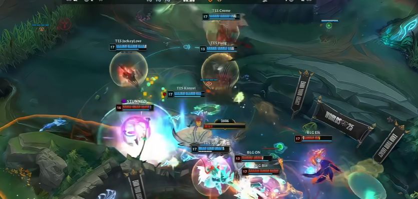第二局,BLG开局就拿下了一血,看似形势一片大好。然而,TES并没有被这一开局所影响,他们巧妙地化解了BLG的进攻,并连续拿下中立资源,成功拿下第二局来到1:1。这一局充分体现了TES的应变能力和团队协作精神。