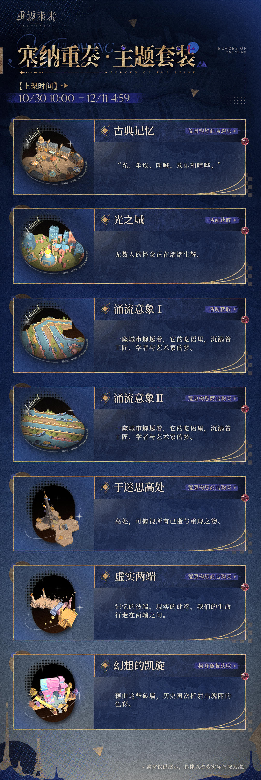 活动期间【塞纳重奏】主题套装(部分)将在荒原商店上架并限时售卖;