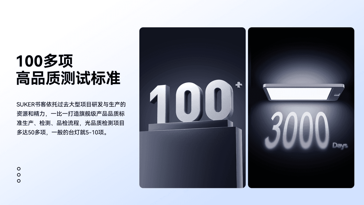 书客品牌深耕家用深度护眼领域已逾10年,凭借雄厚的技术积累与持续创新精神,自主研发出一系列行业领先的核心技术,专注攻克长期困扰家庭的光线照度与护眼难题。书客始终秉承“医学养护眼”的使命,坚持以高标准科研理念为指导,从技术突破到产品落地,必须经过3200+小时实验室护眼模型训练、58项光健康干预测试,90%以上儿童用光行为场景模拟等100余道严苛工序的逐一打磨。并还邀请了20000+家庭测试使用,实时发现真实发生的安全隐患与问题并改进,打造高效、持久、可信赖的家居健康解决方案,为全球消费者构筑起真正安心的健康屏障。