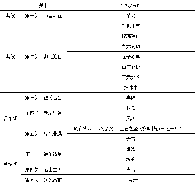 全成就需要同一个存档吕布线、曹操线自虐难度各通关一次,并取得图中特技/策略。(第二关特技两条线补全就行)