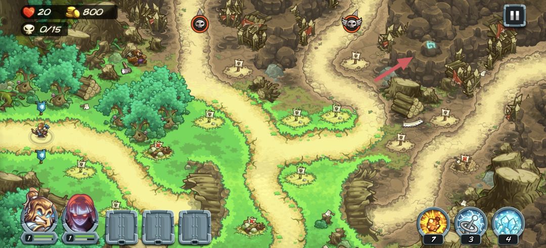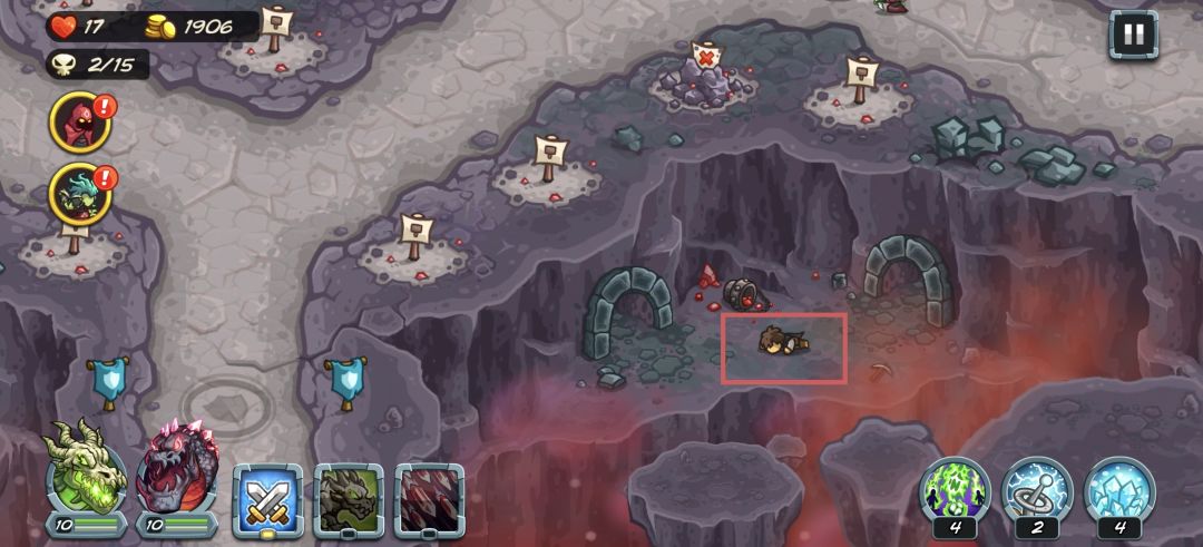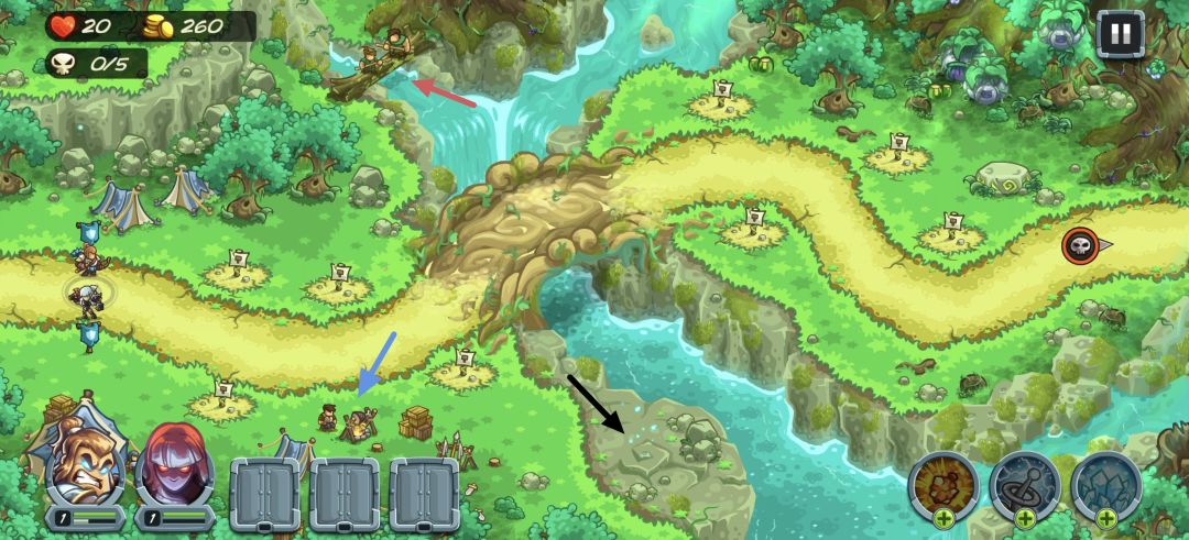 本关共有四个彩蛋,第一个(图1红色框框)依次点击四个树灵即可达成“游戏结束”,第二个(图1紫色箭头)点击小羊即可达成“羊羊快讯(1/3)”,第三个(图1蓝色框框)召唤10名树灵荆棘矛兵即可达成“绿林豪杰”,第四个(图2橙色箭头)点击即可达成“符文寻旅(4/6)”