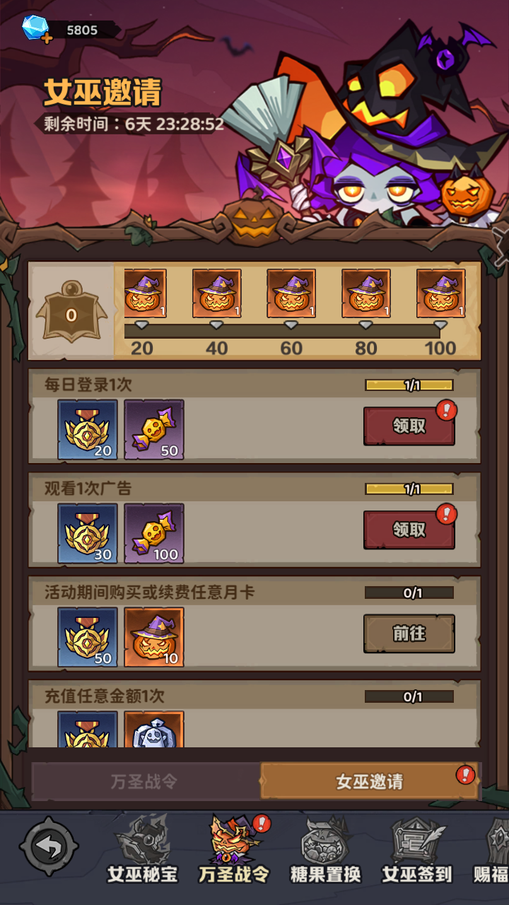 在女巫邀请中,每日可获得150糖果和15诡灵币