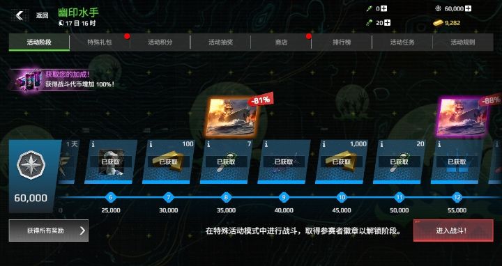 优先完成每日前10场战斗 :活动期间,每日前10场战斗可享受额外的x5倍积分奖励,这是快速获取积分和代币的关键,要尽量保证每天完成这10场战斗。