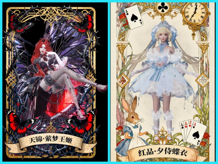 高定这配色咋的一看有点杀马特啊,不过在妄想山海就还好,可以染色,搭配,右边就很萝莉风格,就非常的适合小个子女孩穿搭,可爱又俏皮