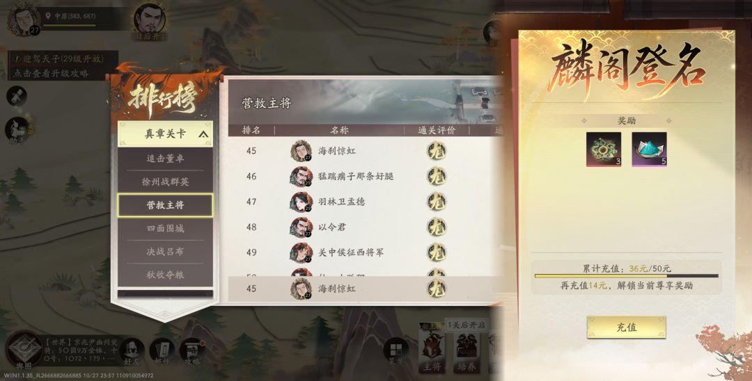 首先,如果你是一个零氪或微氪玩家,就先不要执念于抽红将,这游戏对于玩家的友好之处就在于就算是杰品质的武将也是可以玩的,只要武将使用得当,推主线、或是其他副本,甚至排名的见真章,都是没有问题的,“武将”只是你人手中的一枚棋子而已,作为统领所有武将的“执棋之人”,是否能够过发挥出每个武将的能力,那是你这位“元帅”的能力。这也许就是战棋策略游戏的魅力所在吧。一款好的战棋游戏,玩家是可以通过自己的思考、调兵遣将、奇谋兵法等等手段通过重重关卡的。能做到这一点的才能算得上是真正的策略游戏,而这款游戏无疑已经做到了。
