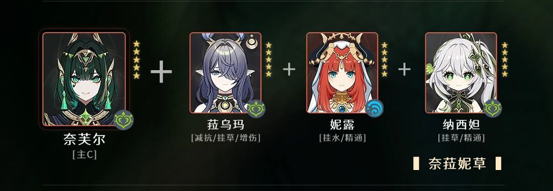 总结奈芙尔在配队上唯一的要求是保证满辉,目前最佳的满辉队友是菈乌玛,其次是爱诺,队友的作用是挂水和拐精通,板砖妮露是最好的挂水位。