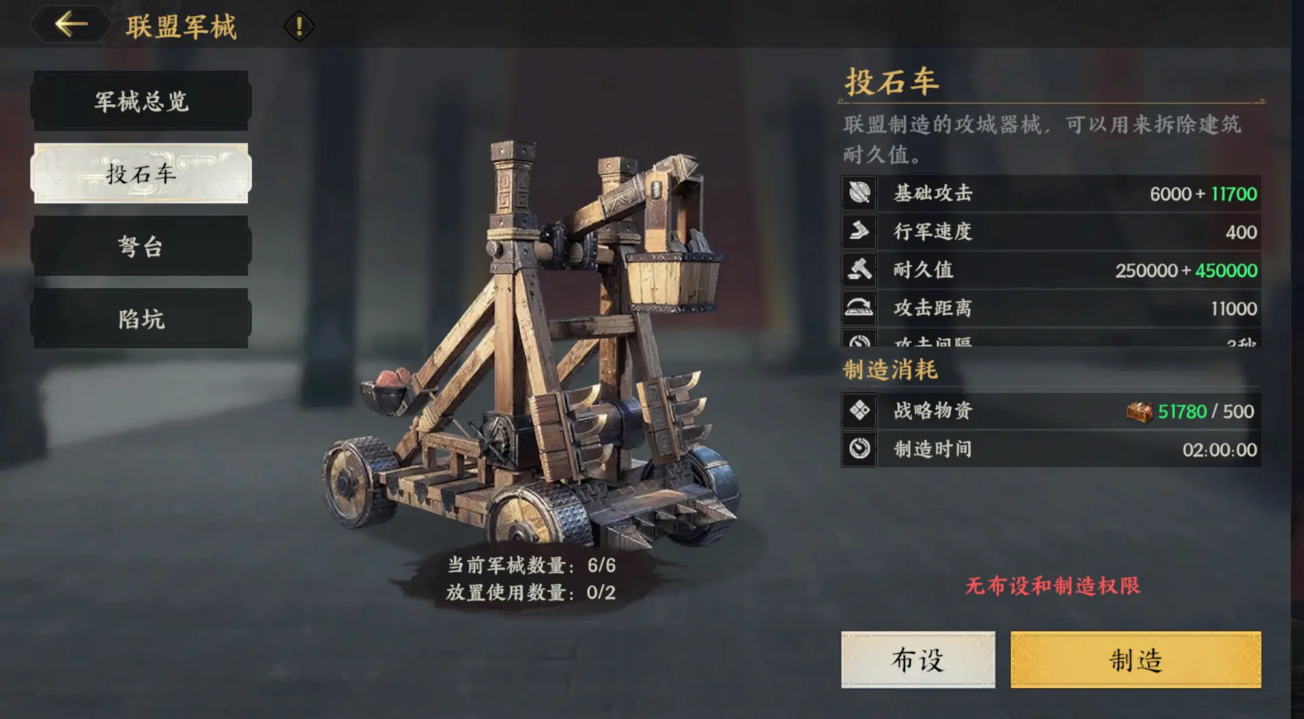 ●三级关口城防耐久极高,更需要联盟提前建造投石车。