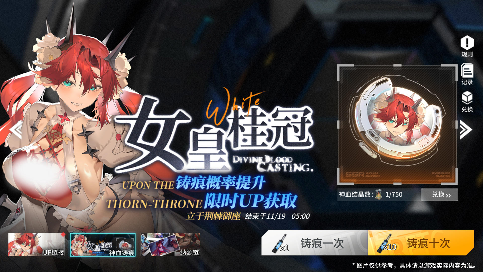 限定角色白蔷薇专属烙痕「立于荆棘御座」UP铸痕,铸痕概率提升!