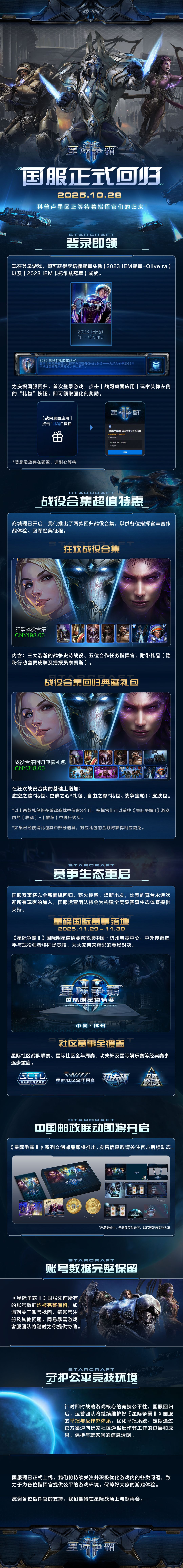 《星际争霸 2》国服正式回归,登录领冠军奖励