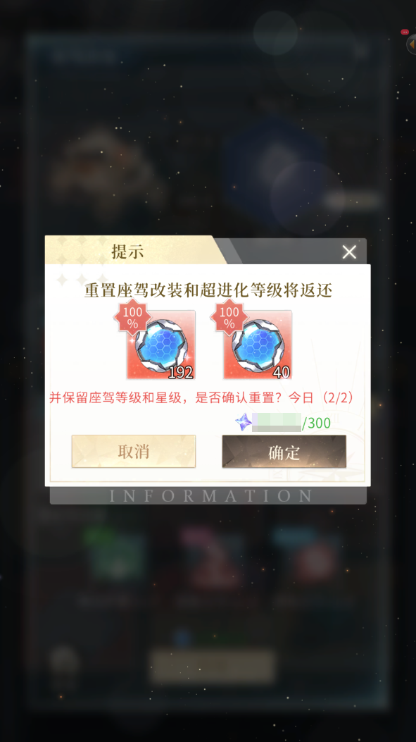 重置后,座驾形态、获得的羁绊技能、超进化的技能等都会回到初始状态~