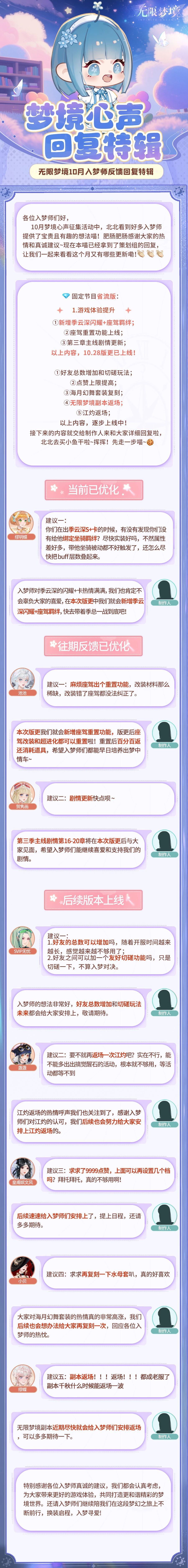 意见反馈丨10月梦境心声回复特辑