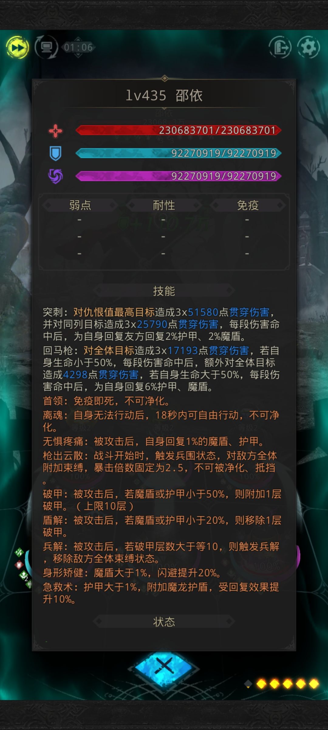 邵依输出不算太高,240的链接刚好能站得住,20%>护甲/魔盾<50%的时候每次命中➕1层破甲,在这之间叠满10层破甲,护甲/魔盾掉到20%以下触发兵解,就会解除锁暴击倍率,剩下就是保持挂毒不断
