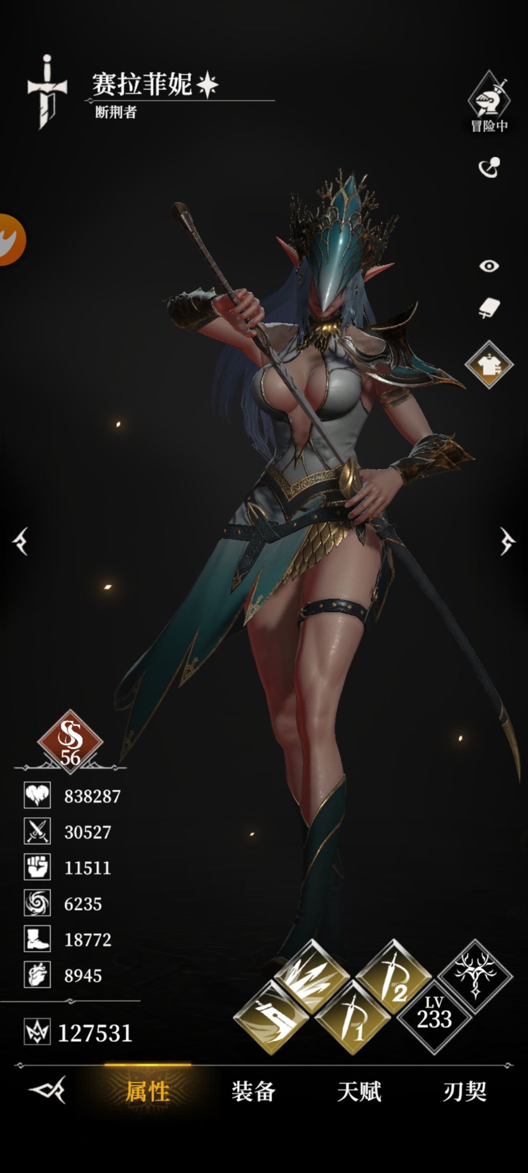 3、核心思路和刚需: ①矮子和暗影神官血量需要抗一次boss全屏技能,这个应该不难,我矮子四增益套,一堆50-100等级装备,70万血左右能抗一下。暗影也是血量职业,70+万没压力。②主力输出剑圣,辅助输出海伦娜。海伦娜用莫拉的穿甲套,血量没要求。③全员能活到bosd2-3管血左右,全自动,不需要操作。④优化剑圣赌博几率,常规阵容剑圣要单挑boos,5管血以上,这里只要求单挑2-3管血。⑤剑圣要求,威力最高,能在第一阶段闪避boss普攻(进入第二阶段,团灭前boos只剩2-3管血),后面剑圣单人,单挑boss2-3管血。