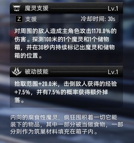 该魔灵的位置固定,且必定捕捉,此魔灵的技能可以增加拾取范围和寻找其他魔灵和储物箱