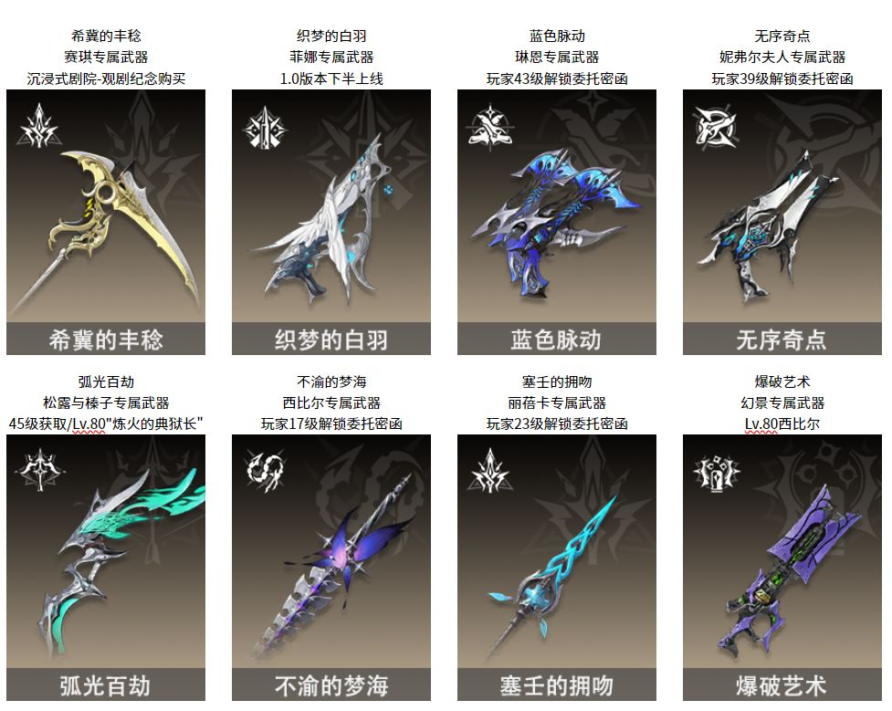 公测版本一共会有8名五星角色,以下是这8位角色和对应专武的获取方式: