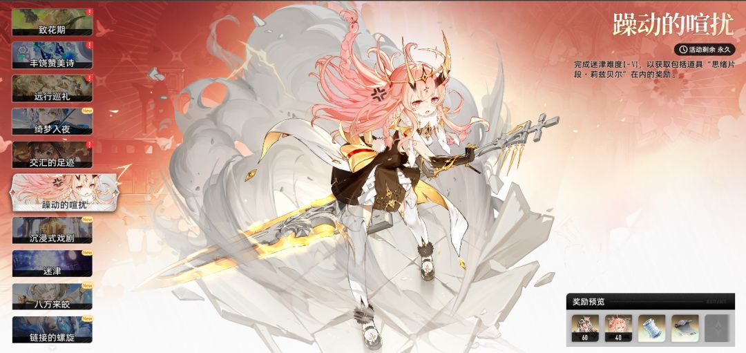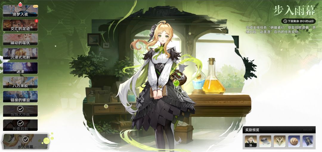 这个时期中最主要的的任务是主线任务推进、提高玩家等级、解锁养成上限,然后去体验和了解游戏的大致玩法,同时尽可能节约资源,为45级解锁的一系列功能铺路。