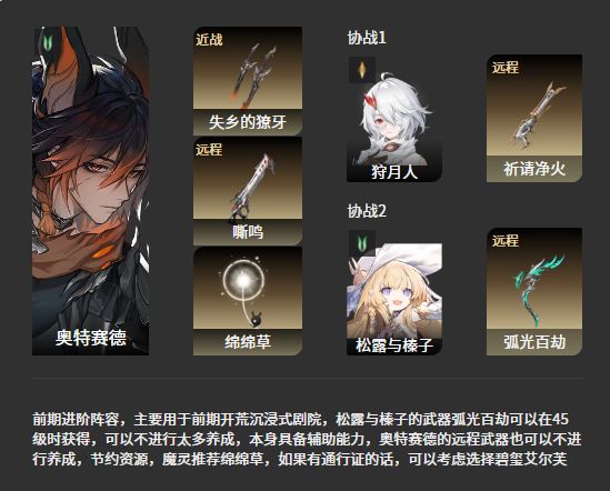 虽然不是【奥特赛德】的首选远程武器,但是因为主线推进期间还是有不少需要远程武器的环节,将武器留给自己携带也方便更好的解决战斗,两位协战队友的武器只是临时使用,不需要进行过多培养。