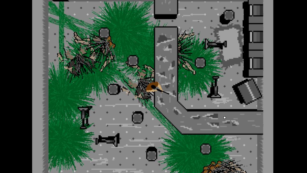 游戏玩法就是俯视角射击(废话),其中有意思的“bug”是“无限子弹”,即枪里没有子弹也能正常攻击。