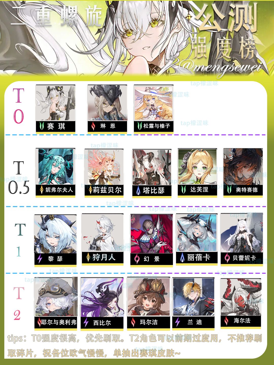 🔸达芙涅:增伤奶⻆⾊,配队十分万金油,前期刷取优先输出,因为松露也是增伤奶,而且获取简单。