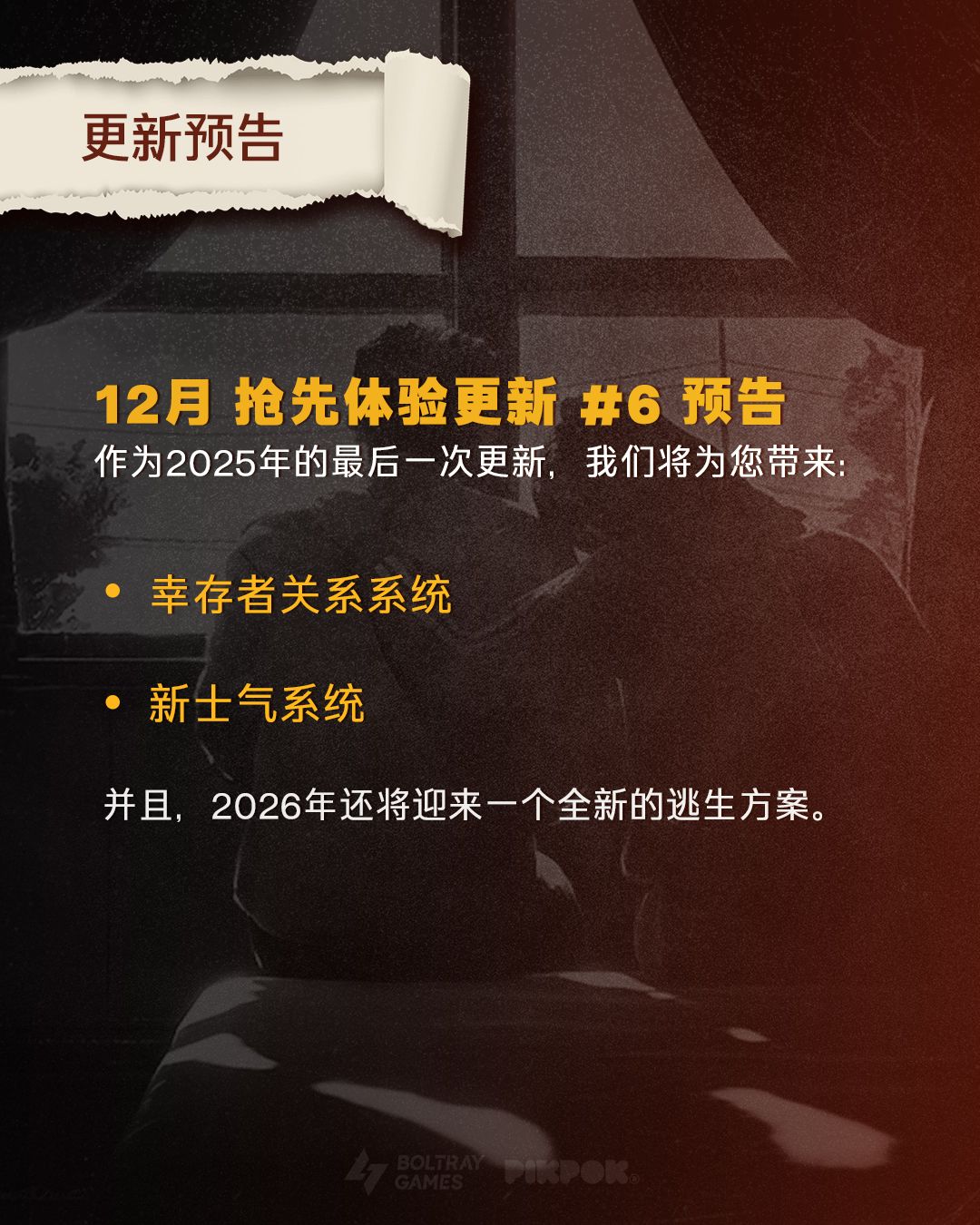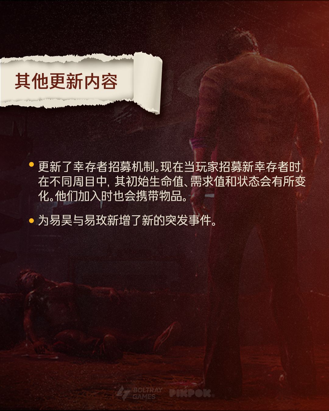 还有三个幸存者任务和新增四位NPC,两张全新地图,并且多存档功能也正式上线。