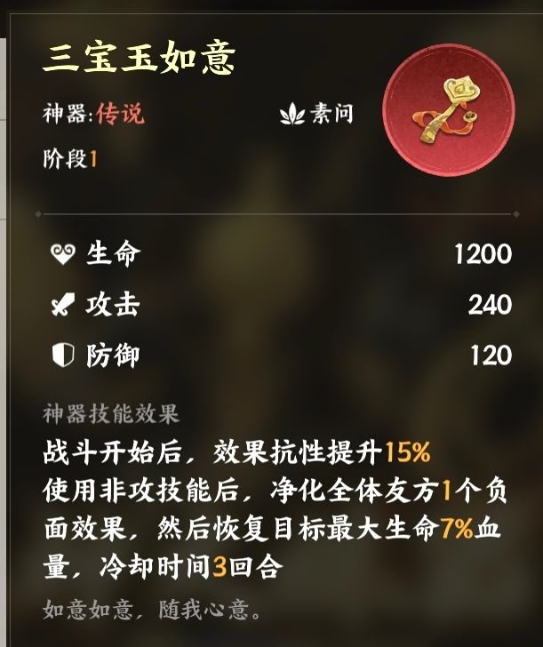 小桃姬月旦评:三宝玉如意提供的群体清负面这一特性就已满足大部分战斗需求,面对白无常、西施等负面角色时也有很好的针对作用。