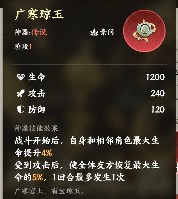 小桃姬月旦评:广寒琼玉提供受击后全体回血的效果,保证了全队的生命健康。