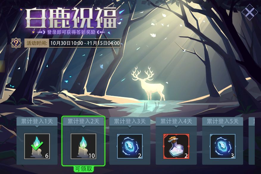活动内容:白鹿神降临,带来奖励和祝福。活动期间,每日登录游戏即可免费领取 “幽暗蜡烛”、“王者英魂”、“幻彩之尘”等。