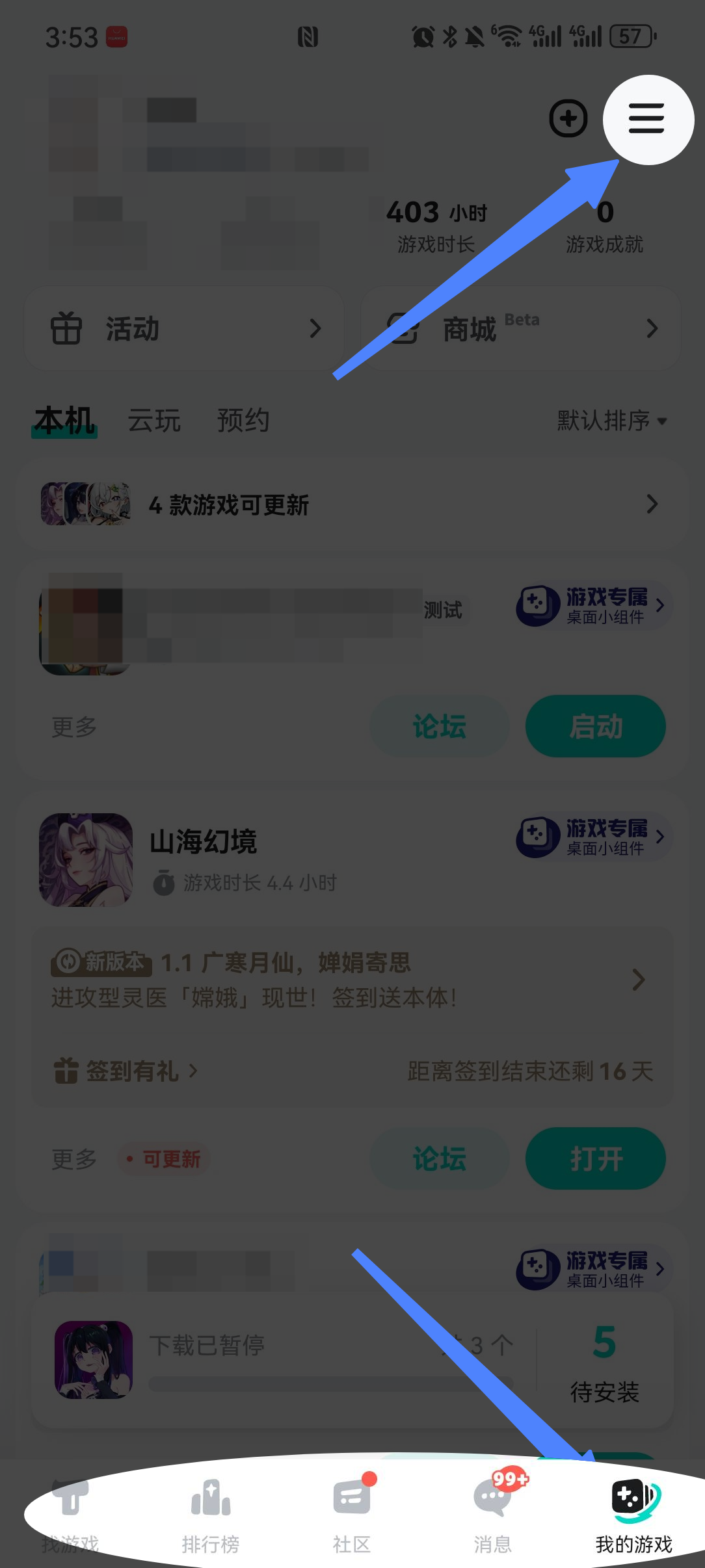 步骤一:在手机端打开TapTap进入【我的游戏】,选择右上角【菜单】