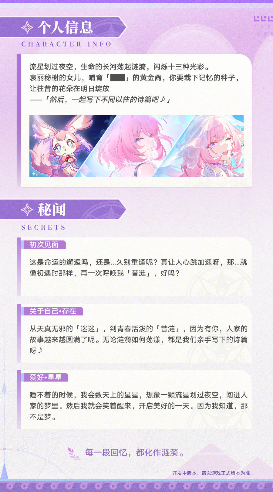 开拓者好呀~今天为大家带来「昔涟(记忆•冰)」的角色前瞻!