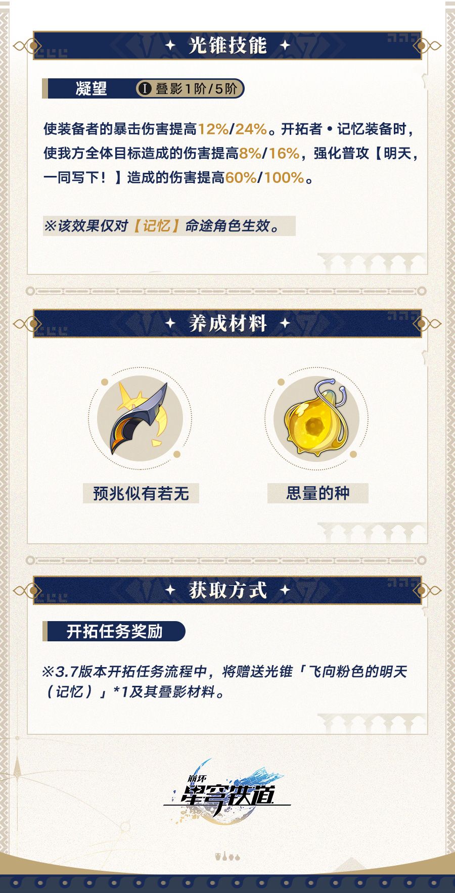 开拓者好呀,一起来看看3.7版本「成为昨日的明天」的光锥前瞻~