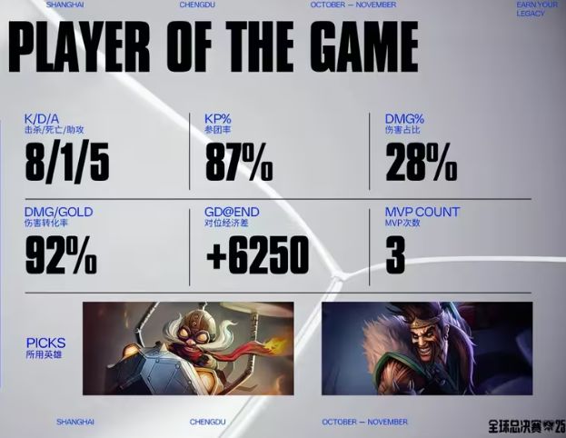 LPL赛区的各支队伍表现可谓是几家欢喜几家愁。AL战队作为二号种子,以三战全胜的傲人战绩率先晋级,就像一匹黑马在赛场上横冲直撞,展现出了强劲的实力。而TES的晋级之路则充满了曲折,他们先胜两场后又遭遇两连败,好在最终在与BLG的内战中成功战胜对手,拿到了八强的入场券。BLG作为一号种子,原本签运不错,却在关键的内战中爆冷告负,令人惋惜。IG更是早在入围赛阶段就被淘汰,早早结束了本次征程。
