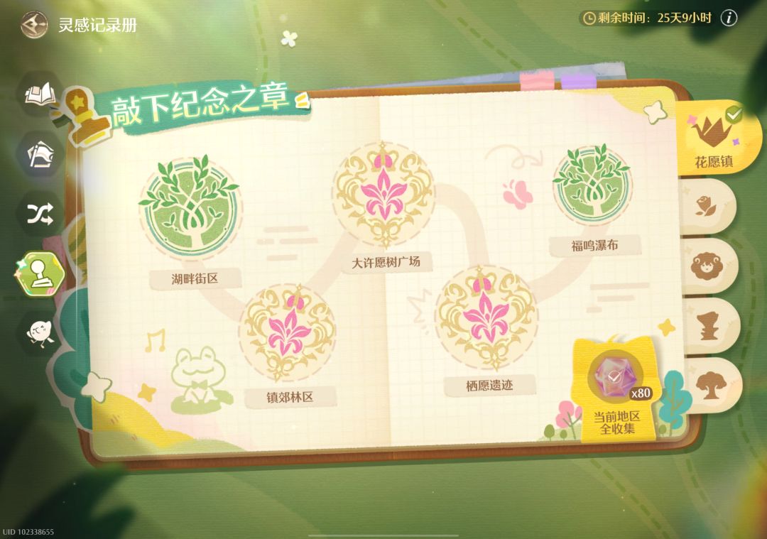 敲下纪念之章活动的花愿镇篇,由于出于方便考虑,煮啵将原本第三个的大许愿广场放到了第一个。