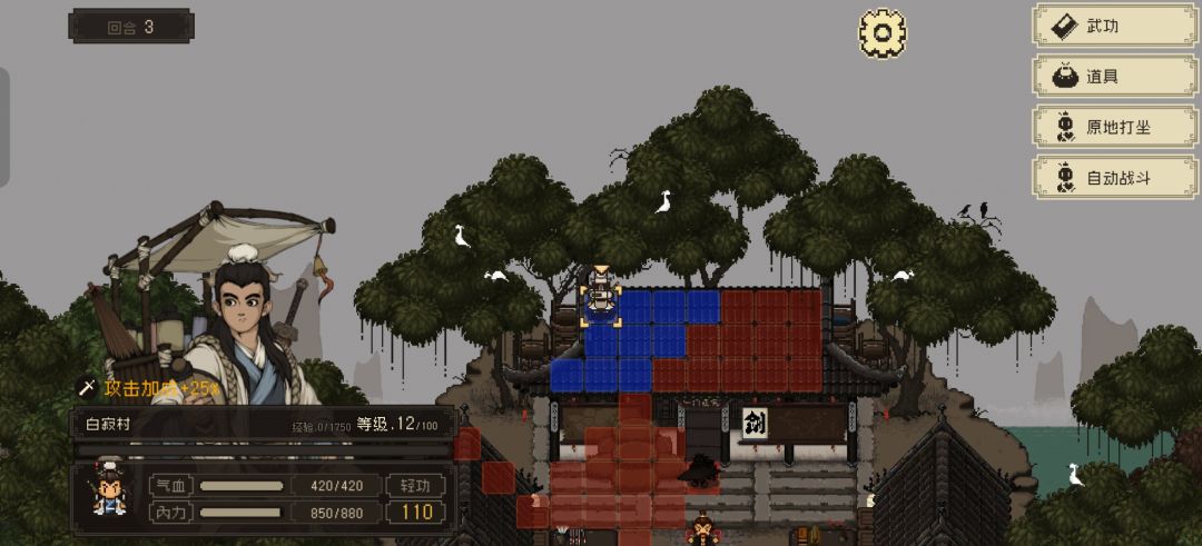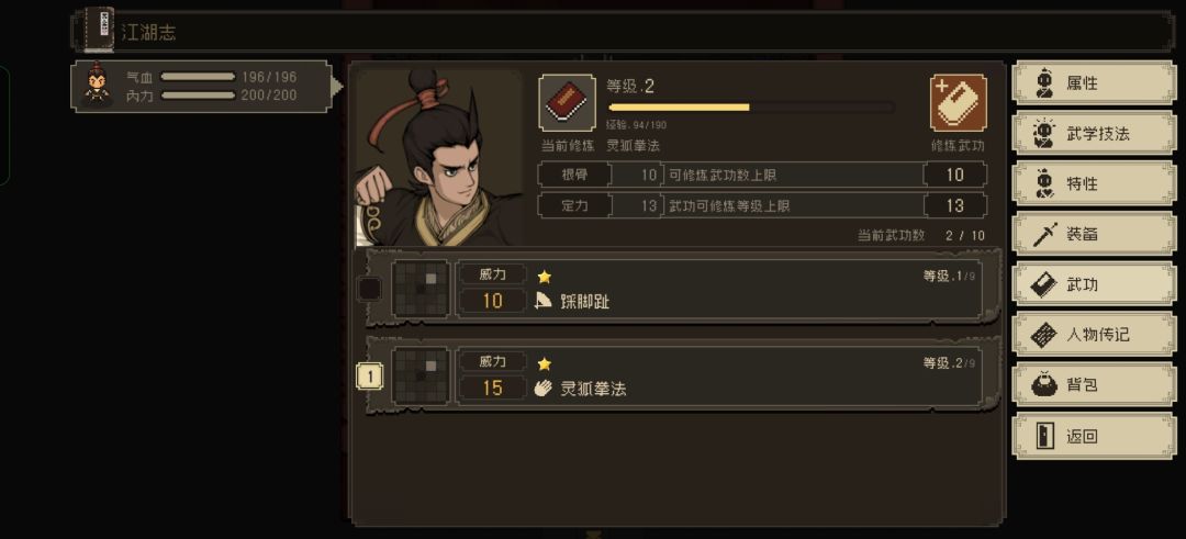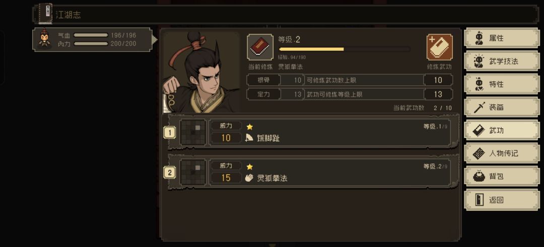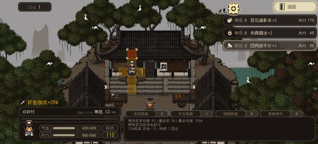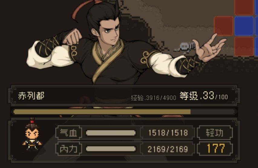 主角悟性加到27,身法加到12,装备江湖秘典袈裟,学碧罗流云掌,点击数字图标1。