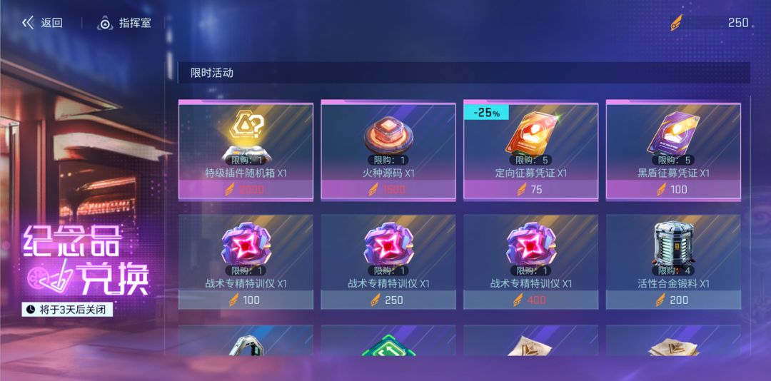6、活动奖励:推进活动剧情、挑战活动关卡等都可以获得机械羽,使用机械羽兑换队员特级插件、征募凭证、养成道具等奖励哦!