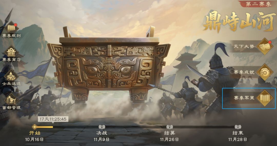 下面先来简单给各位主公介绍一下赛季军策玩法: