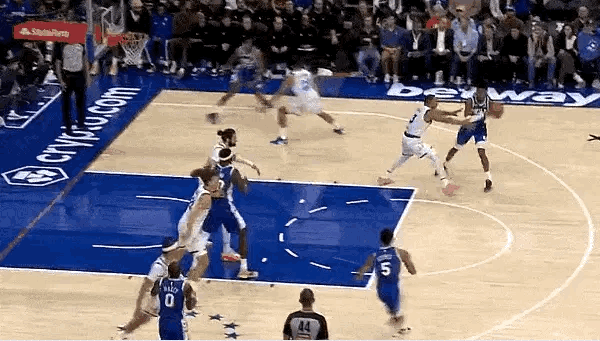 比赛的第二节,格兰姆斯45度接球,迎着瓦格纳扑防三分命中。