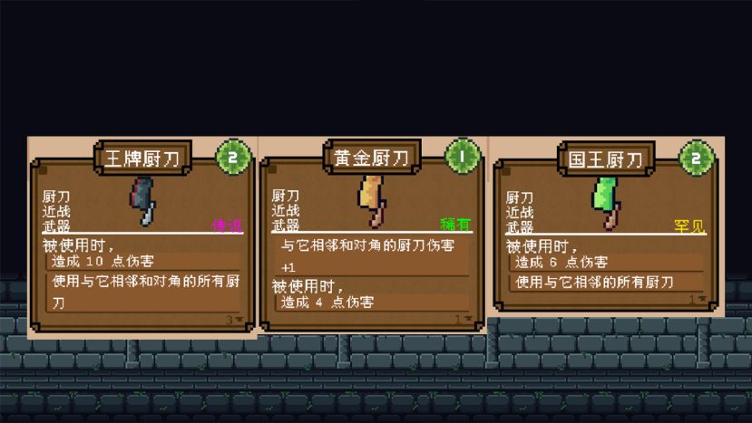 每一把菜刀都有着专属特性,有的能触发连击、有的能叠加伤害、有的能附加流血效果,而当它们在背包中相邻摆放时,还会激活 1+1>2 的协同增益。