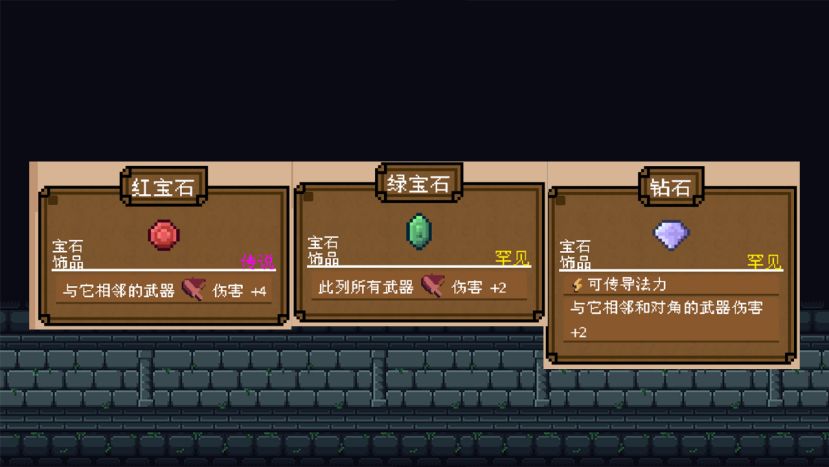 随着探险深入,你将不断收集到各类强力宝石,只需通过精妙的背包空间规划,让宝石与十字镐相邻摆放,就能触发叠加增益效果—— 一颗宝石提升基础伤害,多颗邻接宝石触发属性共鸣特效,加成层层攀升,完全没有上限桎梏。