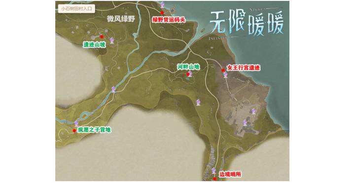 欢乐集市和乘风磨坊都是在最顶端的,蓝色字体为11月4日第二期更新点位,绿色字体第三期盖章点位11月11日解锁。求点赞关注收藏