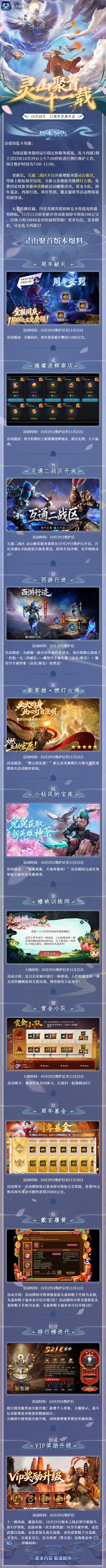 11周年限定版本—灵山聚首10月29日更新维护后正式上线